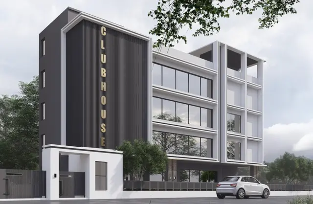 A 4 tier clubhouse with rooftop swimming pool